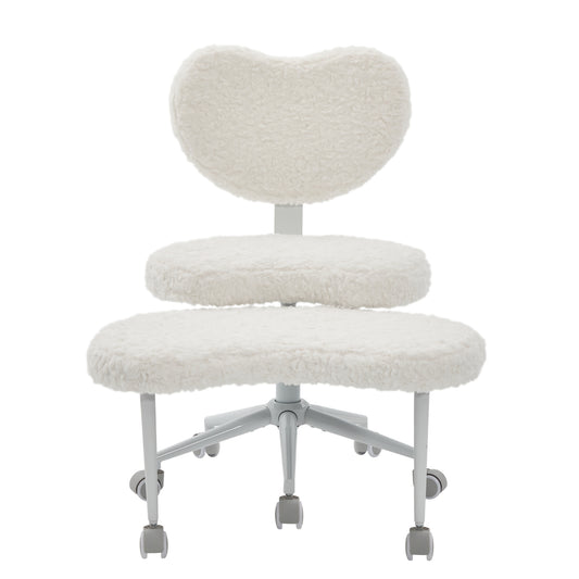 Artificial rabbit hair Meditation Chair Plus, Cross Legged Chair with Wheels, ADHD Chair, Criss Cross Desk Chair with Lumbar Support and Adjustable Stool, Flexible Design for Fidgety Sitters, Beige