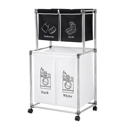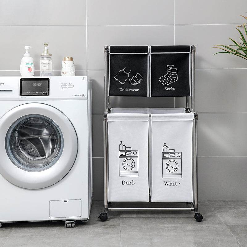 Transform your laundry routine with the innovative laundry basket with removable bags from MLNshops. Ideal for busy households, this two-tier clothes sorter simplifies organization. Featuring four removable bags, it provides easy sorting for Lights and Darks.
