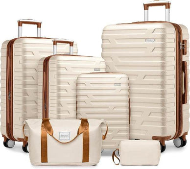 Upgrade travel with the 6 piece luggage set with duffel bags from MLNshops. This set stands out for families and solo travelers. Each piece matches in elegant cream. Durable hardside suitcases protect belongings from bumps. An expandable design gives more packing room on the go.
