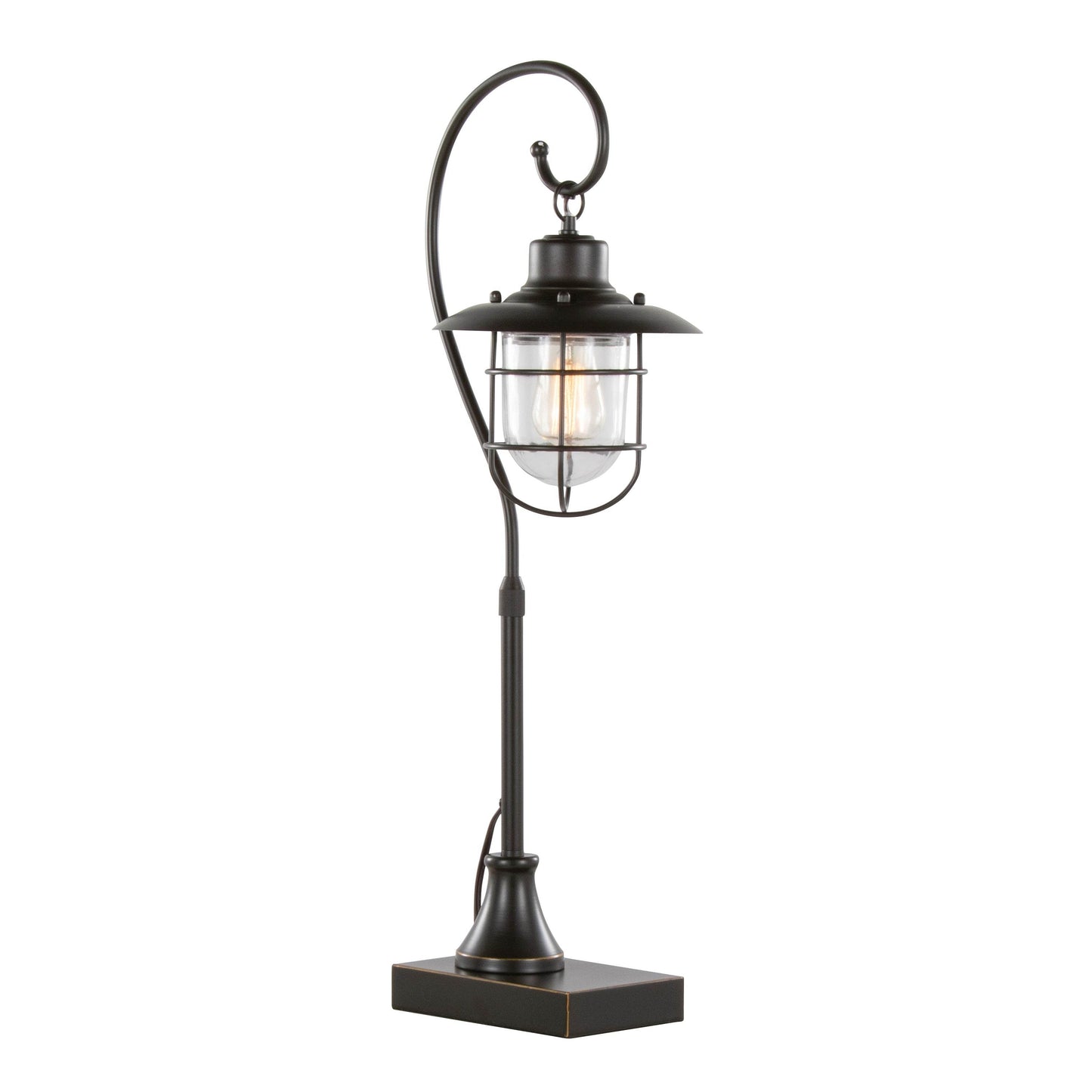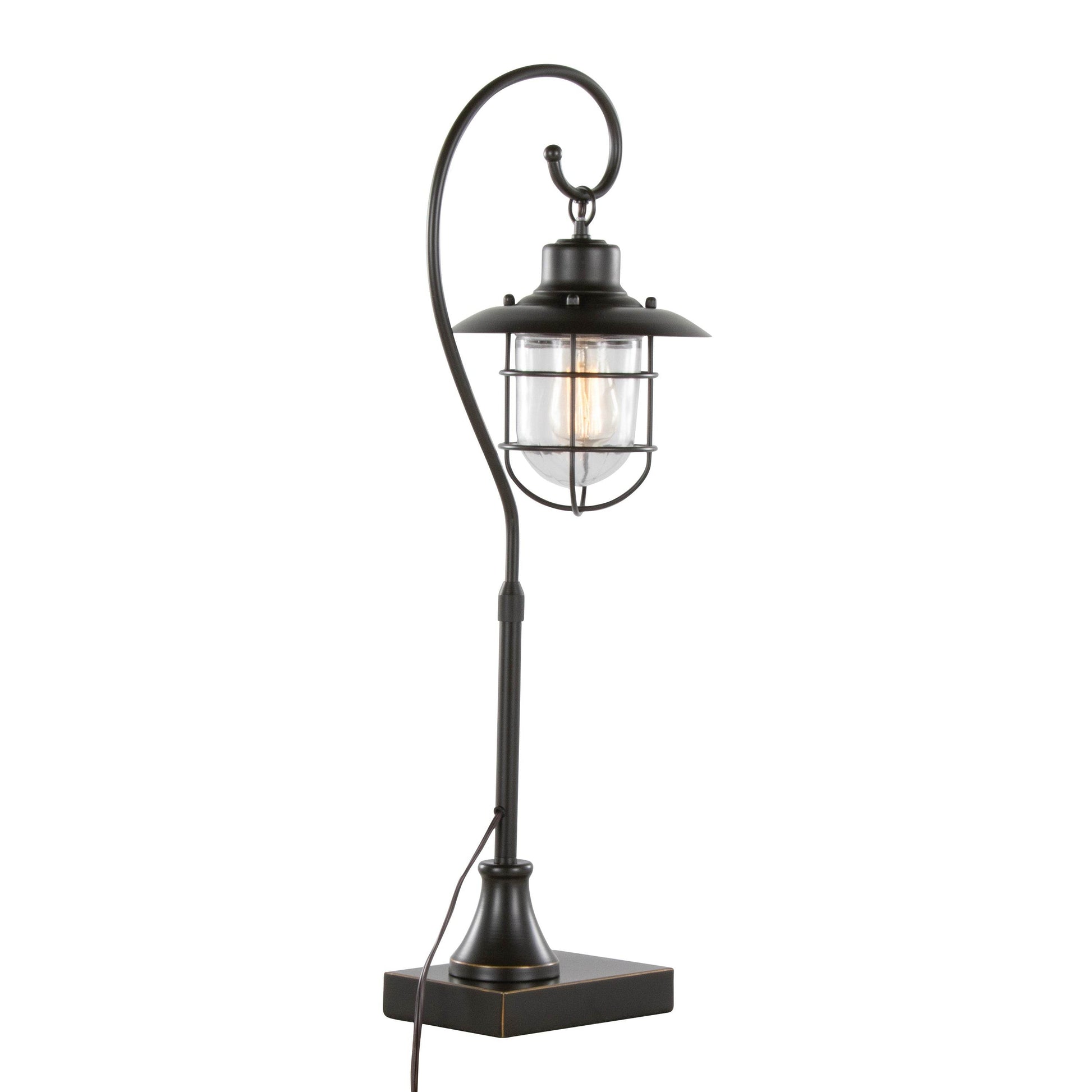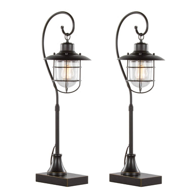 Upgrade your workspace or living area with this contemporary metal task lamp set. The Landen 33' lamp set blends modern design with vintage charm. Each lamp features an oil rubbed bronze finish and a clear glass shade. The sturdy metal frame and square base give stability. The glass shade lets the LED light shine clearly. Use these lamps on desks, nightstands, or accent tables in any room.