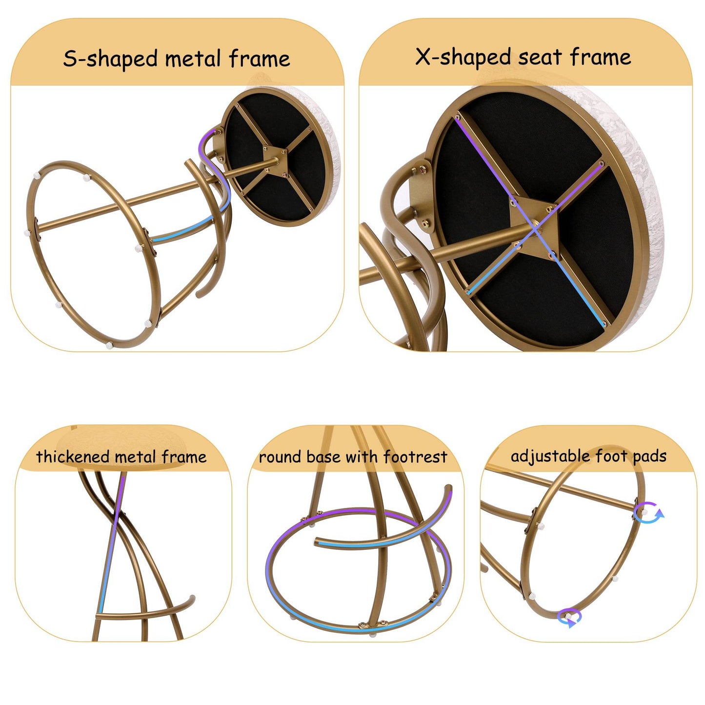 Sturdy metal legs keep these stools steady. The round footrest provides extra support for your feet. The gold finish resists rust and is easy to clean. These stools match modern, glam, and classic interiors. They stand out as a pairing, adding symmetry to your setup.