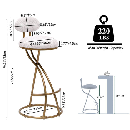 MLNshops Modern Gold Bar Stools Set of 2 with White Cushions